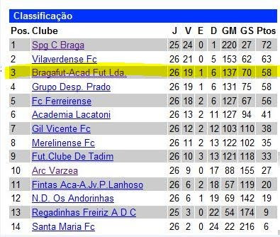 A classificação está assim ordenada (Site da AFBraga e publicação no CMinho):